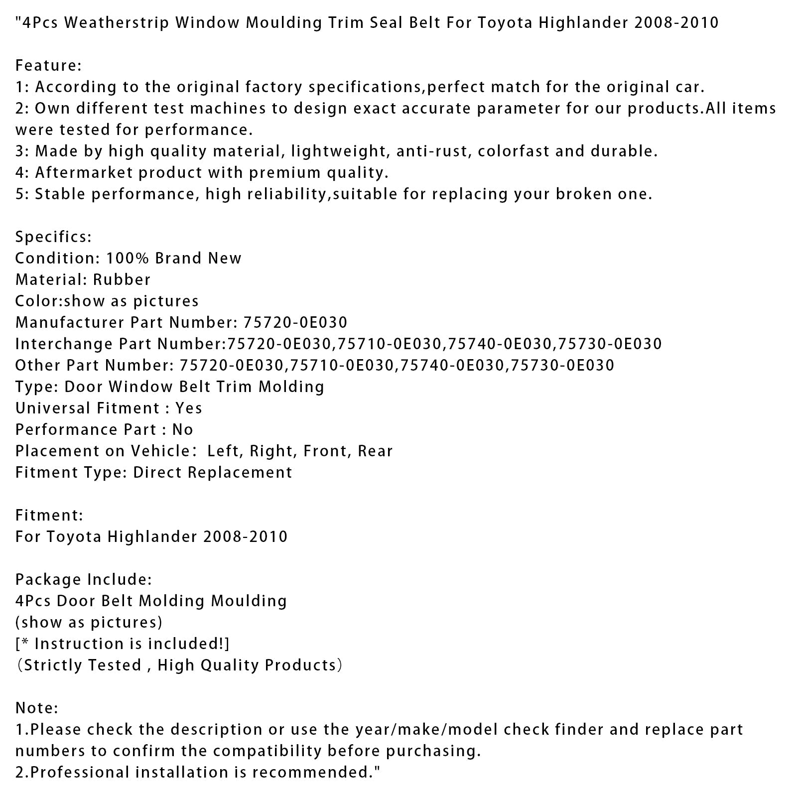 4Pcs Weatherstrip Window Moulding Trim Seal Belt For Toyota Highlander 2008-2010Auto & Motorrad: Teile, Auto-Ersatz- & -Reparaturteile, Karosserieteile!