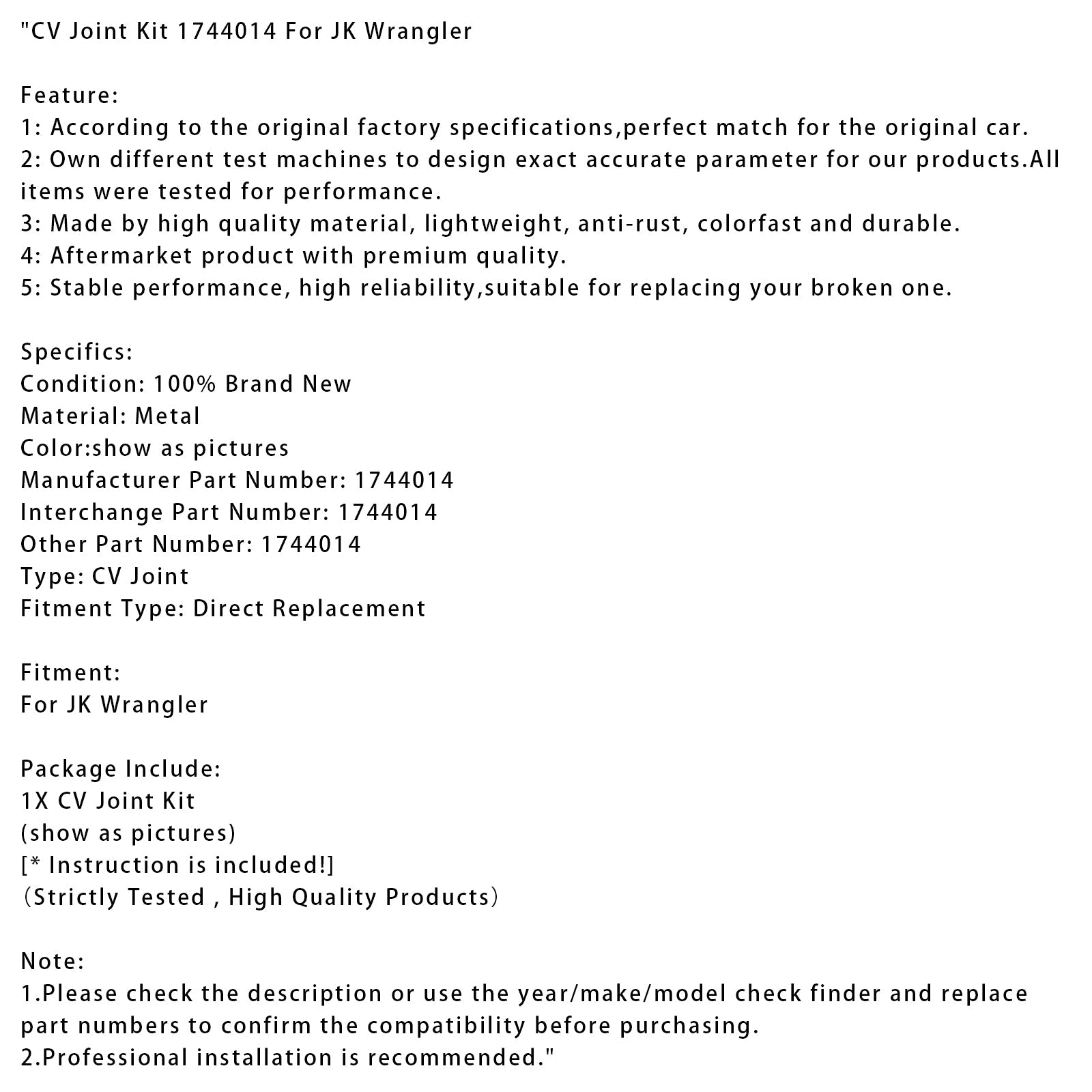 CV Joint Kit 1744014 For JK Wrangler