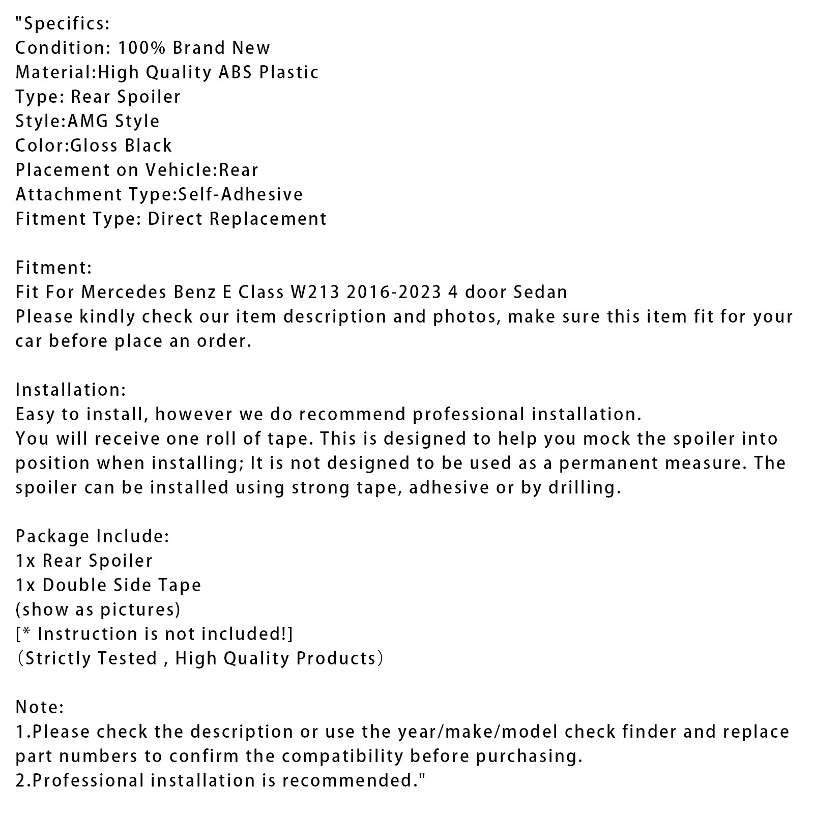 Gloss Black Rear Spoiler For Mercedes-Benz E-Class W213 16-23 AMG Style