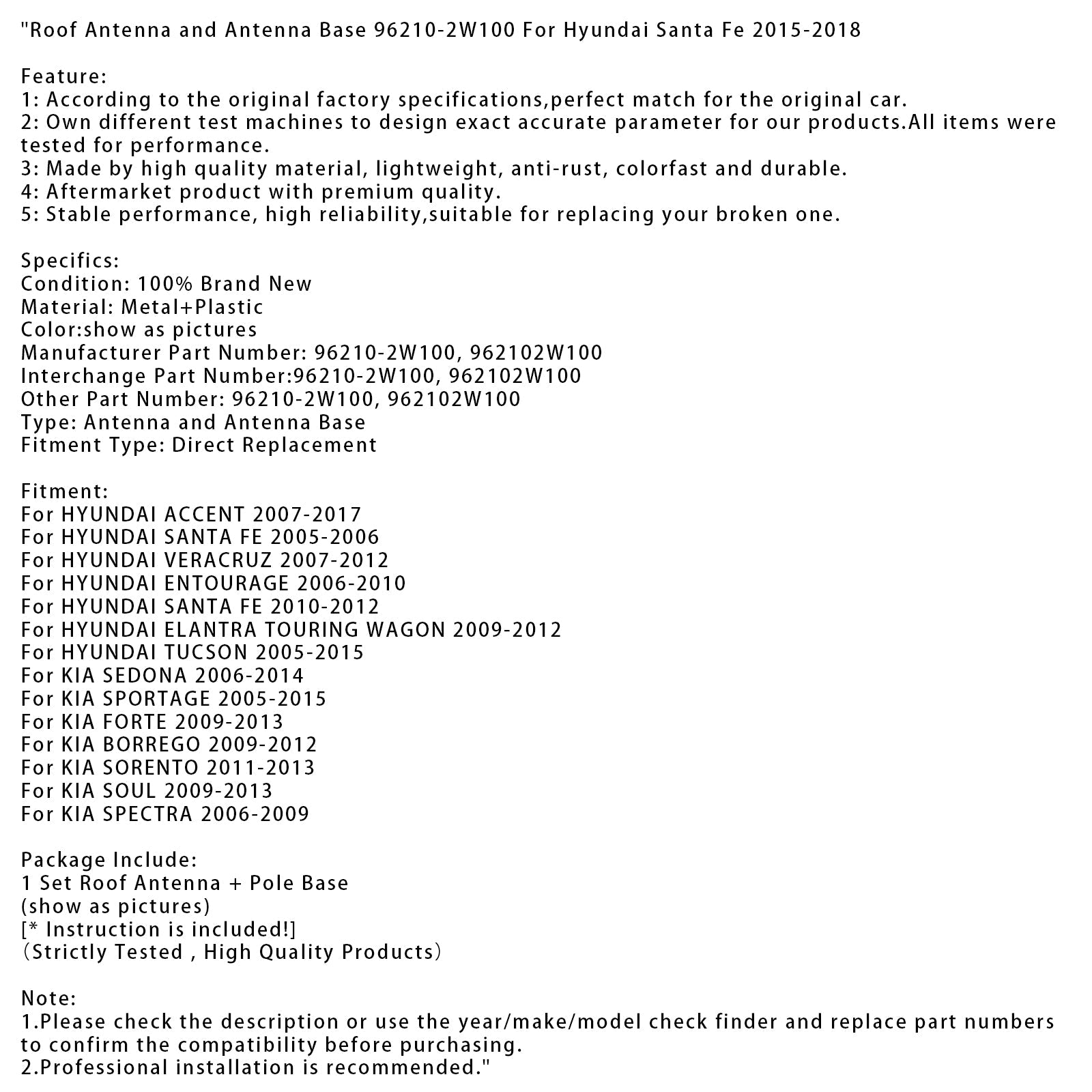 Roof Antenna and Antenna Base 96210-2W100 For Hyundai Santa Fe 2015-2018
