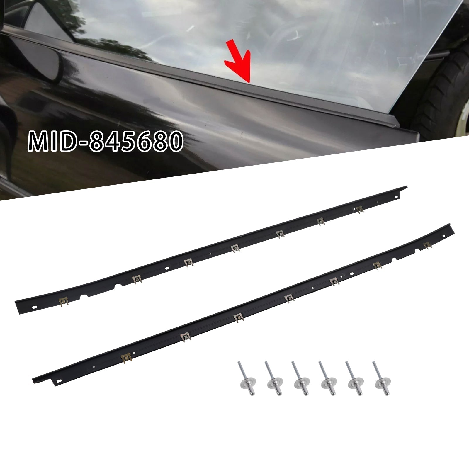 1984-1996 Chevrolet C4 Corvette Driver + Passenger Sides Door Panel Ytre Window Seals Midt-845680