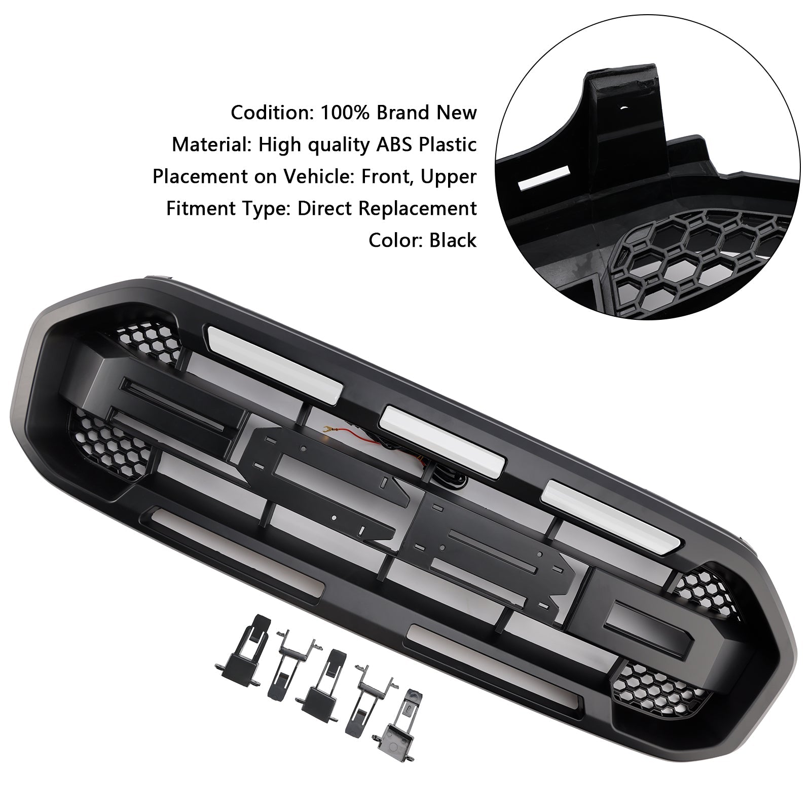 2019-2023 Ford Ranger med LED-lys ingen frontkameraer svart raptor stil fremre støtfanger grillgitter generisk