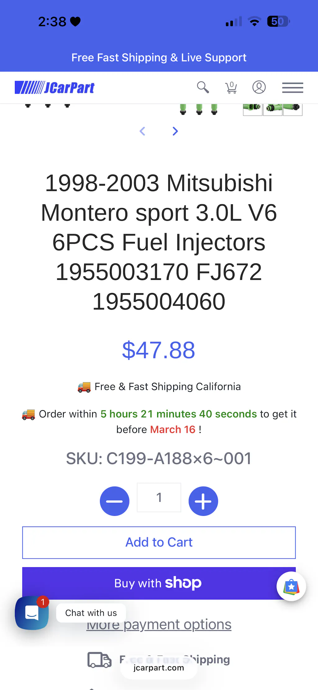 1998-2003 Mitsubishi Montero sport 3.0L V6 6PCS Brandstofinjectoren 1955003170 FJ672 1955004060