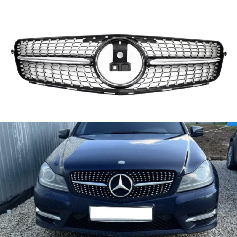 Mercedes-Benz 2008-2014 W204 C-Klasse C300 C350 Diamond Benz Voorbumper Grill LED Embleem Grill