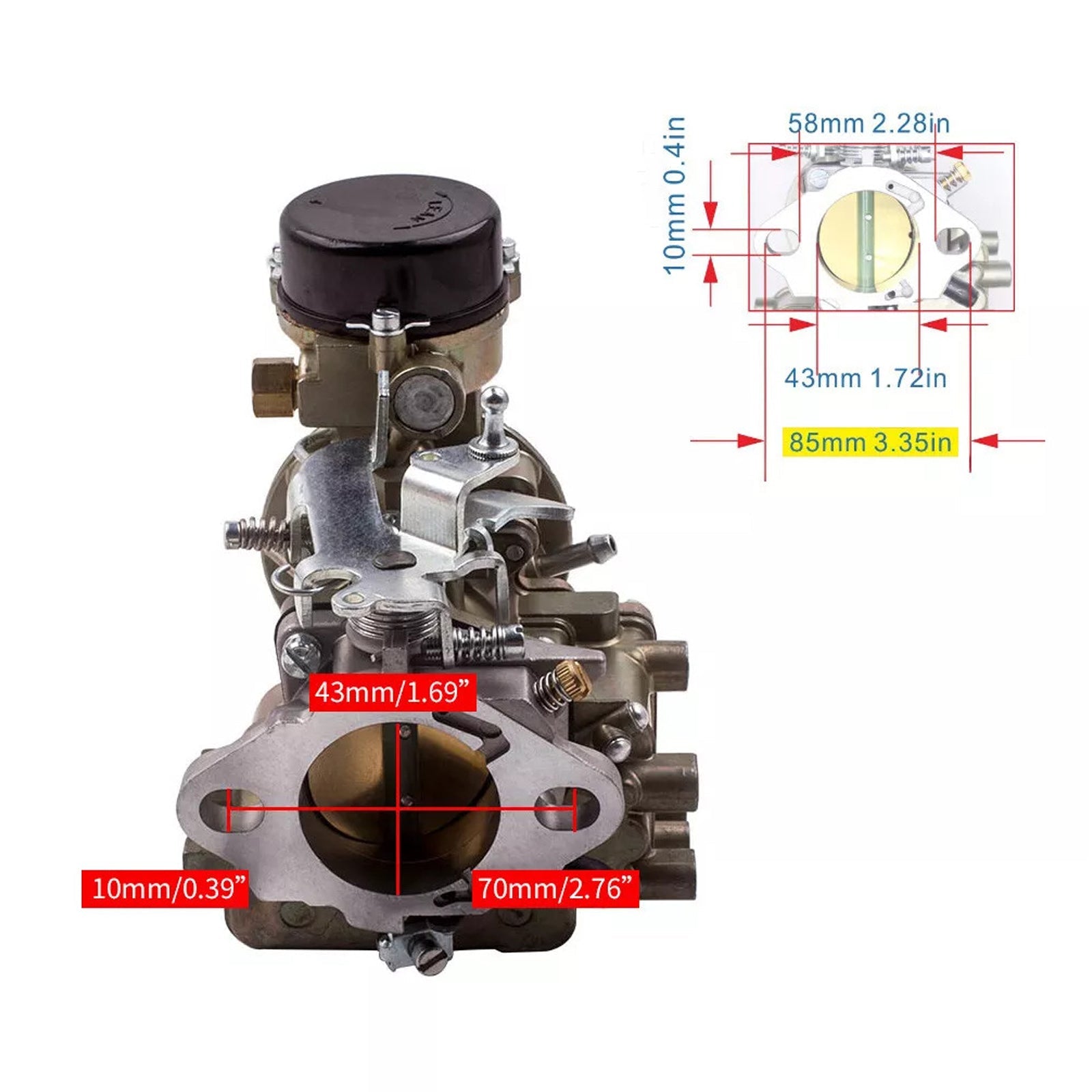 Venturi-størrelse: 1,14 tommer, 300 CFM