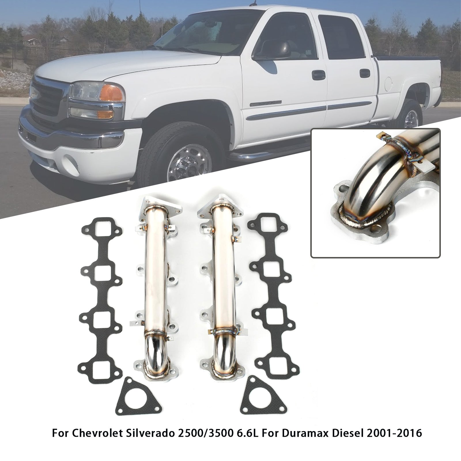 Chevrolet 2001-2016 Silverado 2500/3500 6,6L Duramax Diesel rustfritt eksosmanifoldhode