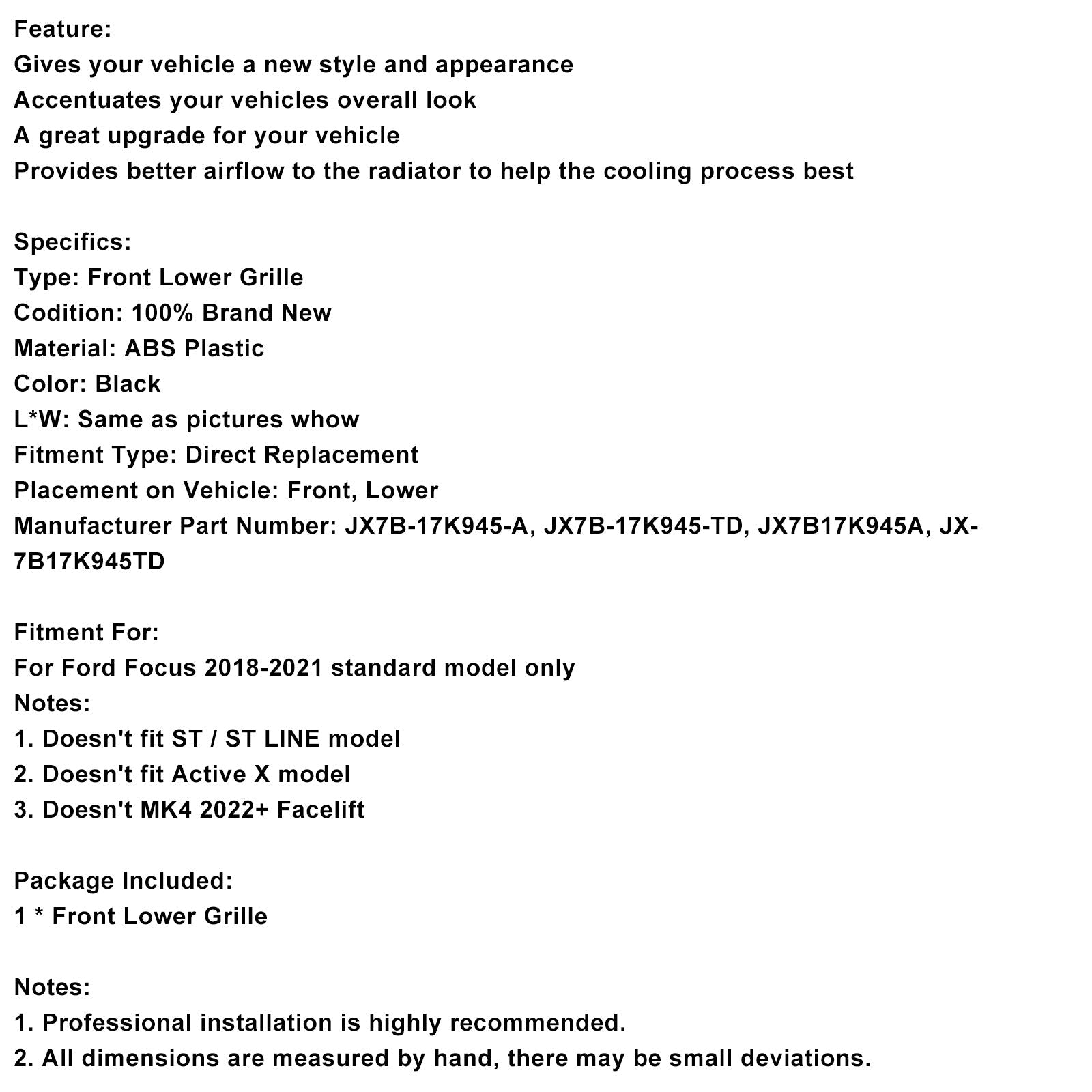 For Ford Focus 2018-2021 standard model only