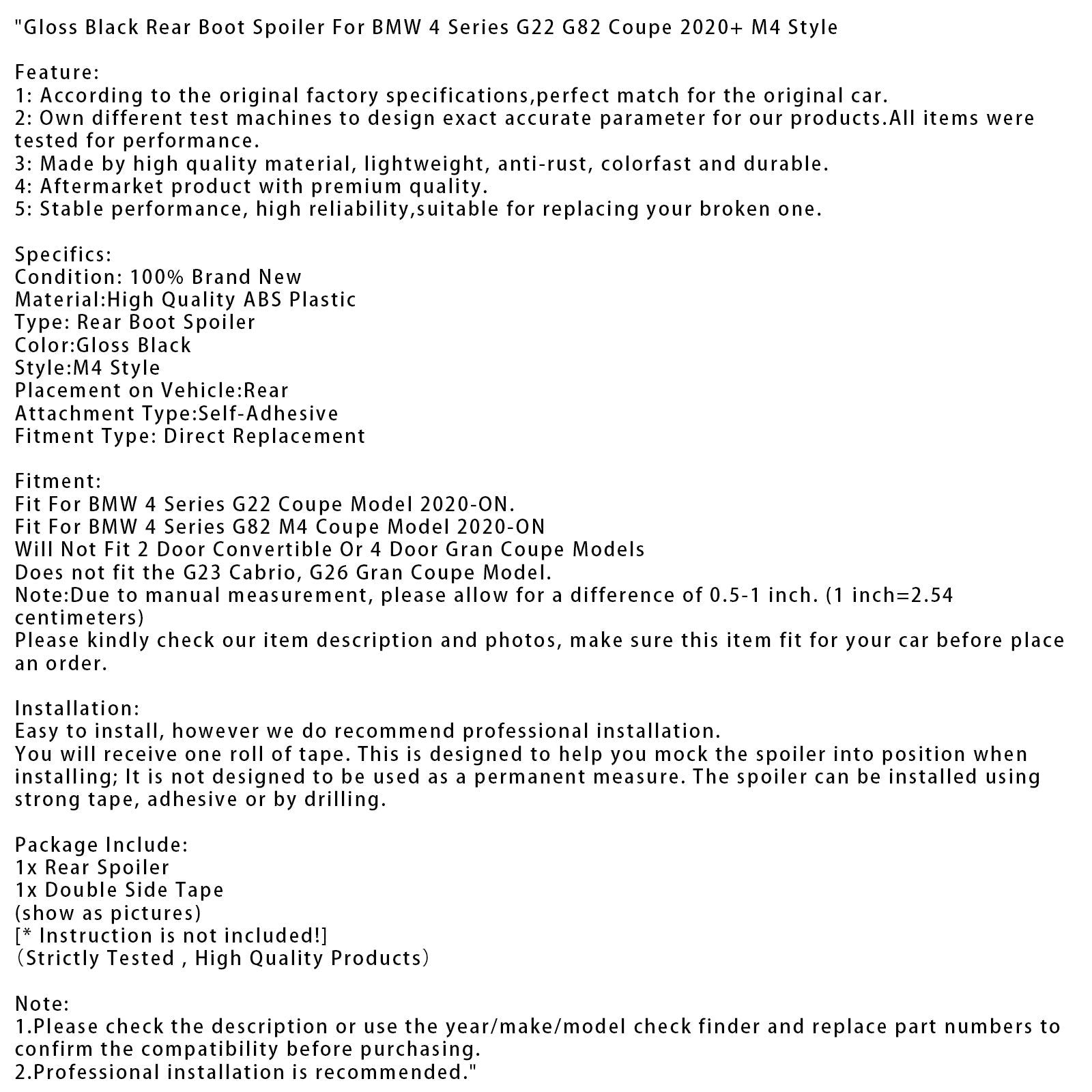 Fit For BMW 4 Series G22 Coupe Model 2020-ON.